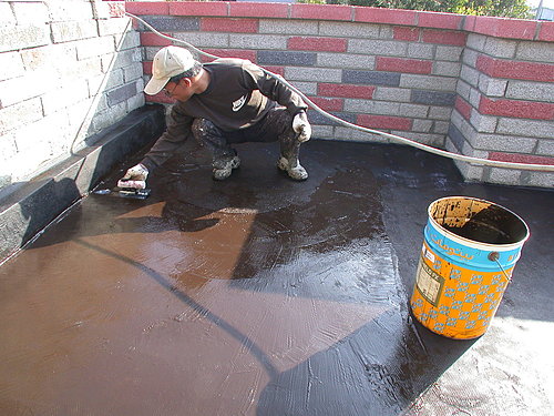 瀝化橡膠在屋頂防水的運用,只是其中的一種方法,一般做防水處理簡便型的處理大都是到油漆行買PU防水漆 自己塗刷或是請油漆師父施工而已,當然這種方法的效用也是有限,因為陽光中紫外線的照射,使它的壽命縮短了,一般約為兩年左右,不過因為省錢,加上容易施工,也不失是一個解決問題的方法,當然也還有其它的方法,如各種相關產品的彈性水泥,而要施做這一些工程之時,一般必須先對特別嚴重的地方,並先找出若漏水的原因做適當處理之後再施工才有效,因為有一些做法涉及專業或結構的問題還是要信賴別人,