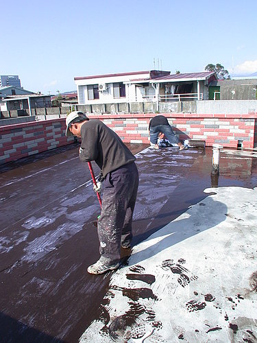 從施工打基礎到鋪不織布,到最後抗紫外線的面漆,算一算有七道工作 還算滿紮實的 因此事後已經經過三四年 還好目前沒問題 哈 好像有一點膽小 (我的照片少了一道 並且順序亂掉了)