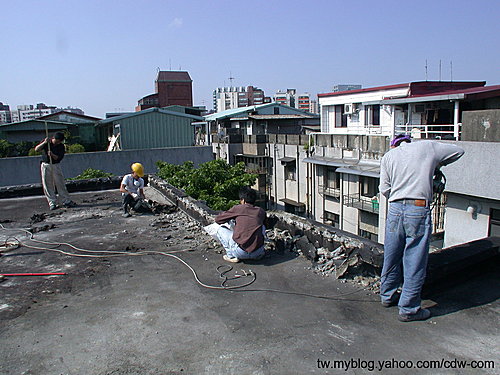 早期的屋頂防水很多都是用瀝青做防水的材料,可能是材料特性,經過一二十年也就失去了它的功能,屋頂積水讓雨水滲透在屋頂形成水漬而造成壁癌,而也因為台灣地處地震帶的原因,經常性地震造成的裂痕也使得雨水流進屋內,因此如果要長保久安則必須完全剃除表面的水泥沙和瀝青,直到剩下鋼筋水泥的部分,並且重新做防水,和泥作粉刷施做,至於如何做防水、放泥作粉刷 因為每一個人的方法並不一樣,可能會有爭議,不便多言 不過可以確定得是防水可以重複做二次,並且在角落,轉角的位置要特別拉高,並且確實施工,而泥作粉刷施做 時 也可以加防水劑一並施做,一般效果還不錯,並且注意粉刷的厚度和瀉水的方向,避免日後又積水。
