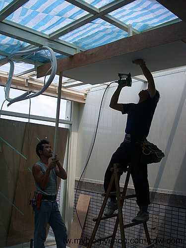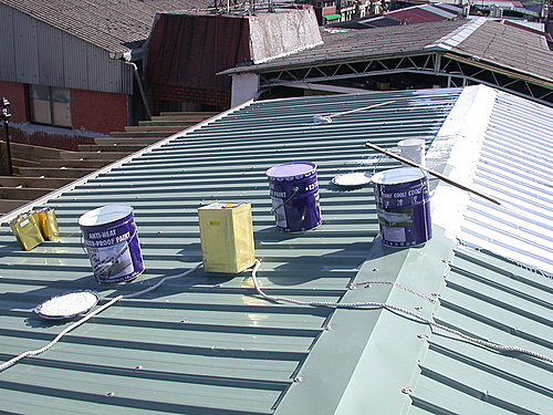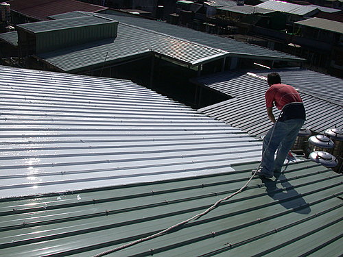 對頂樓或是鐵皮屋,在夏天高熱所產生的困擾,可能不是一般人所能體會的不舒服,並且為了降溫使用冷氣的花費更是不貲,「當年因為工作的關係,幫一個屋主處理高熱的問題,一開始注重於天花板的處理,並且不斷改良結構和材料,因此累積了許多的經驗,也體會出許多的經驗,對於此一部分於「室內裝潢天花板的選擇和運用」一文中已有說明故不多言,根據施工使用的場所,除了頂樓或是鐵皮屋外,也曾在守衛室、玻璃屋都可以得到很好的反應,因此對於最近經濟不景氣,能源上漲,以及節約能源有很大的幫助,雖然也有人提倡在屋頂造景種花、菜可以降低屋頂的高熱,不過其有一定的限制和困難,而我所提的方法似乎是輕易就可以做到的,並兼有加強防水的功能。可供須要的人參考