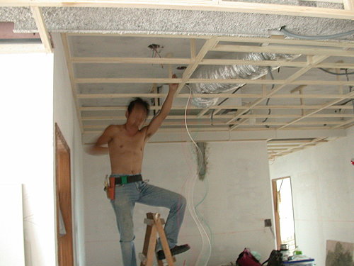 對頂樓或是鐵皮屋,在夏天高熱所產生的困擾,可能不是一般人所能體會的不舒服,並且為了降溫使用冷氣的花費更是不貲,「當年因為工作的關係,幫一個屋主處理高熱的問題,一開始注重於天花板的處理,並且不斷改良結構和材料,因此累積了許多的經驗,也體會出許多的經驗,對於此一部分於「室內裝潢天花板的選擇和運用」一文中已有說明故不多言,根據施工使用的場所,除了頂樓或是鐵皮屋外,也曾在守衛室、玻璃屋都可以得到很好的反應,因此對於最近經濟不景氣,能源上漲,以及節約能源有很大的幫助,雖然也有人提倡在屋頂造景種花、菜可以降低屋頂的高熱,不過其有一定的限制和困難,而我所提的方法似乎是輕易就可以做到的,並兼有加強防水的功能。可供須要的人參考