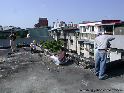 早期的屋頂防水很多都是用瀝青做防水的材料,可能是材料特性,經過一二十年也就失去了它的功能,屋頂積水讓雨水滲透在屋頂形成水漬而造成壁癌,而也因為台灣地處地震帶的原因,經常性地震造成的裂痕也使得雨水流進屋內,因此如果要長保久安則必須完全剃除表面的水泥沙和瀝青,直到剩下鋼筋水泥的部分,並且重新做防水,和泥作粉刷施做,至於如何做防水、放泥作粉刷 因為每一個人的方法並不一樣,可能會有爭議,不便多言 不過可以確定得是防水可以重複做二次,並且在角落,轉角的位置要特別拉高,並且確實施工,而泥作粉刷施做 時 也可以加防水劑一並施做,一般效果還不錯,並且注意粉刷的厚度和瀉水的方向,避免日後又積水。