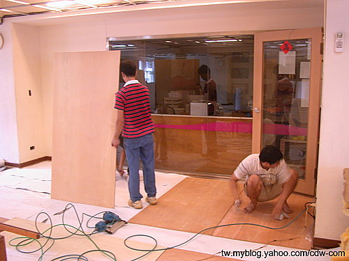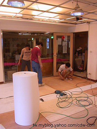 有幾次的施工都是屬於韻律教室的施工,而韻律教室所須要的正是彈性,對高架地板而言要增加彈性並不難,因為高架地板本身就有彈性,只要在角料底下加入橡膠墊就能做到更好的彈性,這也是工程界常用的方法,不足為難。