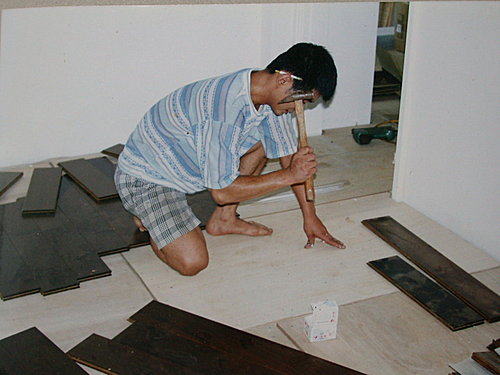 有人說木地板施工,在釘夾板時,幹嘛那麼費事用手釘,一點工作效率也沒有。