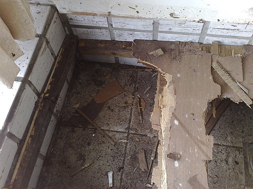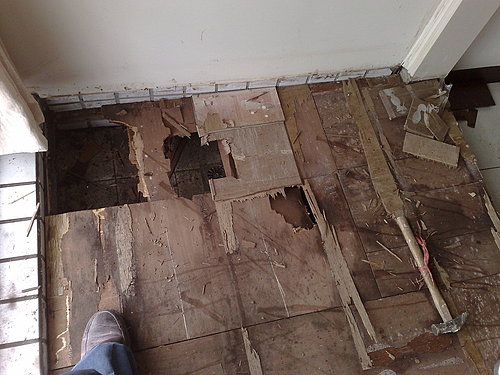 地板底下也沒鋪防潮布 難怪幾年後地板下陷並且散發惡臭