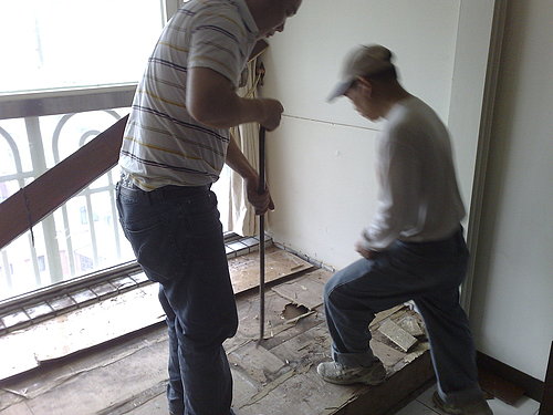 當地板一拆除立即發現 先前施工夾板厚度較薄