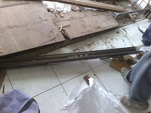 拆除之後還發現舊鋁門未完全拆除 可能當年因為難拆