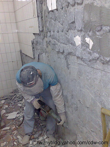 不過事與願違之前得施工是在rc牆上以水泥團直接黏磁磚