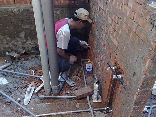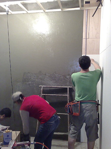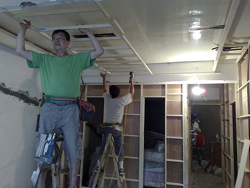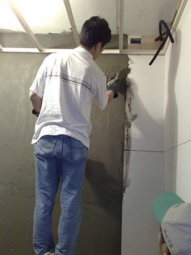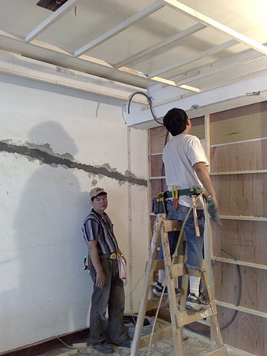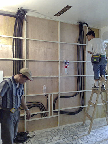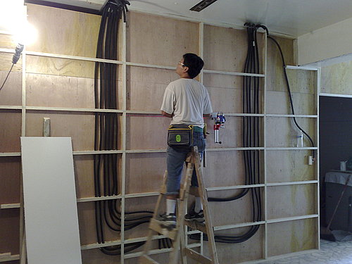 一般工程是泥作成磚牆完成之後在由木工做隔間
