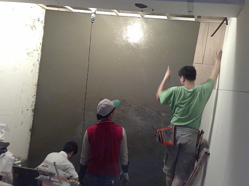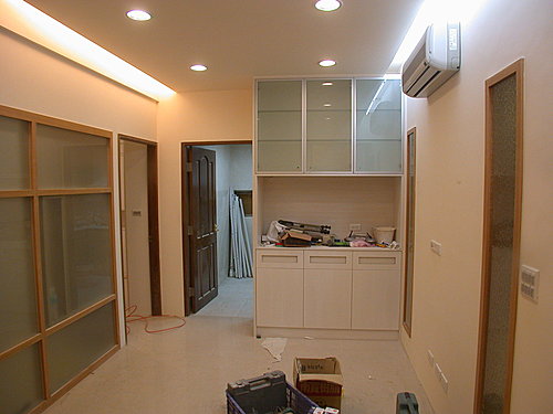 因此泥作先行砌磚並且完成粗粉刷後就由木工完成木作隔間