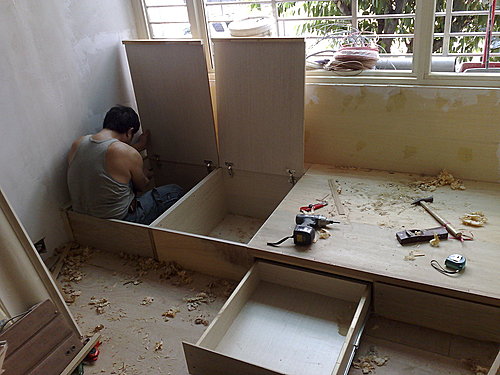 <p>找相關可以作業的人員,還是一般的木工<img src="http://tw.yimg.com/i/tw/blog/smiley/6.gif"/>,不知道如果直接在床下做2各抽屜</p>