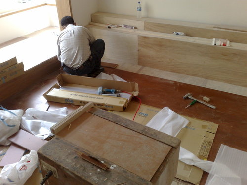 在做實木地板算是很辛苦的工作 因為要整天蹲在地面