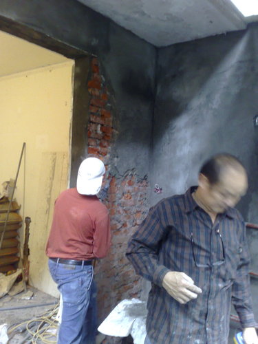 最後我們決定將抹好的水泥打掉 並打掉更多厚度