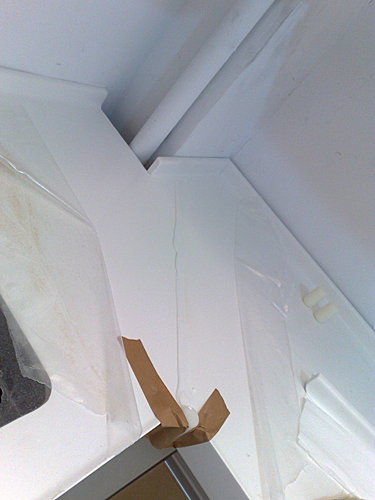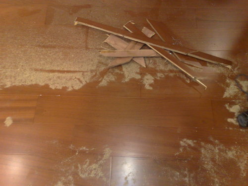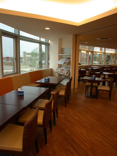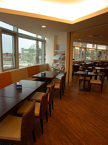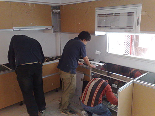 除了深色地板的工程 因為一開始工作人員不當操作櫃台