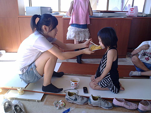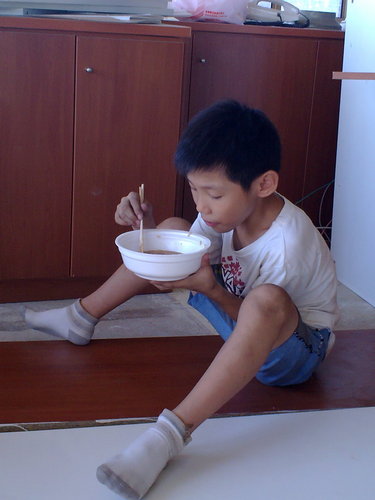 午餐他們自己到便利商電買了幾碗素食泡麵裹腹