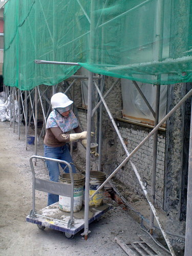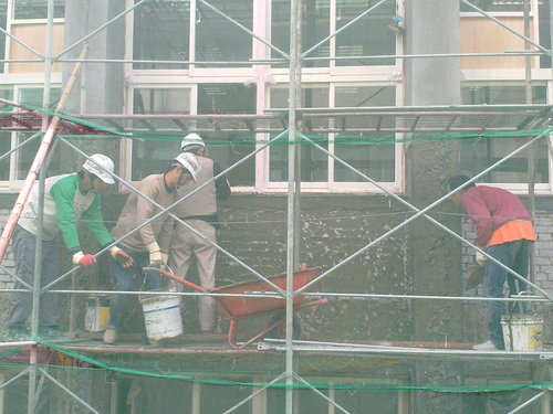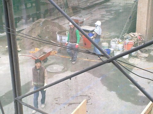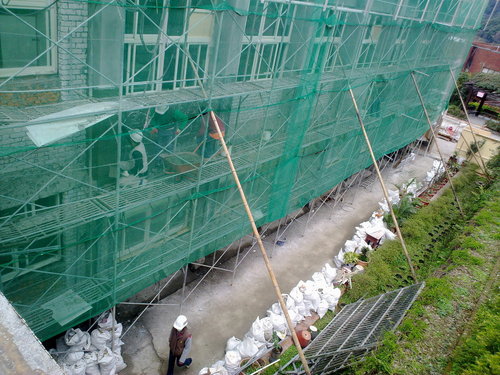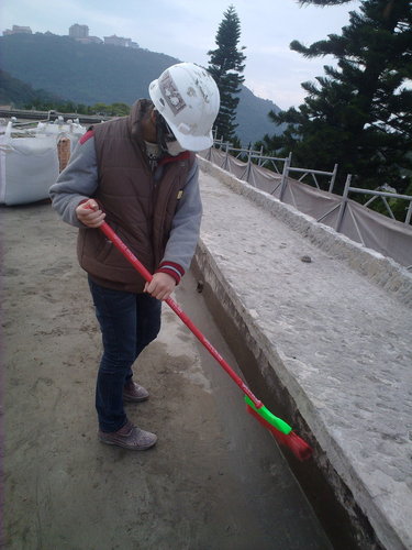 大家趕著將屋頂角落的防水做二次 並且黏上一層抗裂網