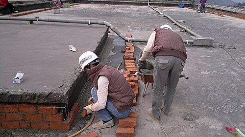 並且在水泥沙漿做洩水的粉刷