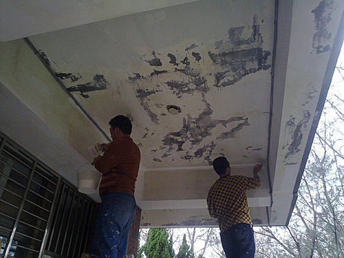 其中還有第三層樓得天花和牆面壁癌及因為屋頂滲水造成油漆脫落的處理