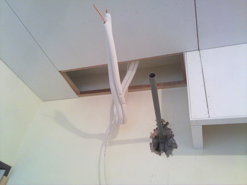 並且在這裡電線和冷氣的銅管也並需妥善處理